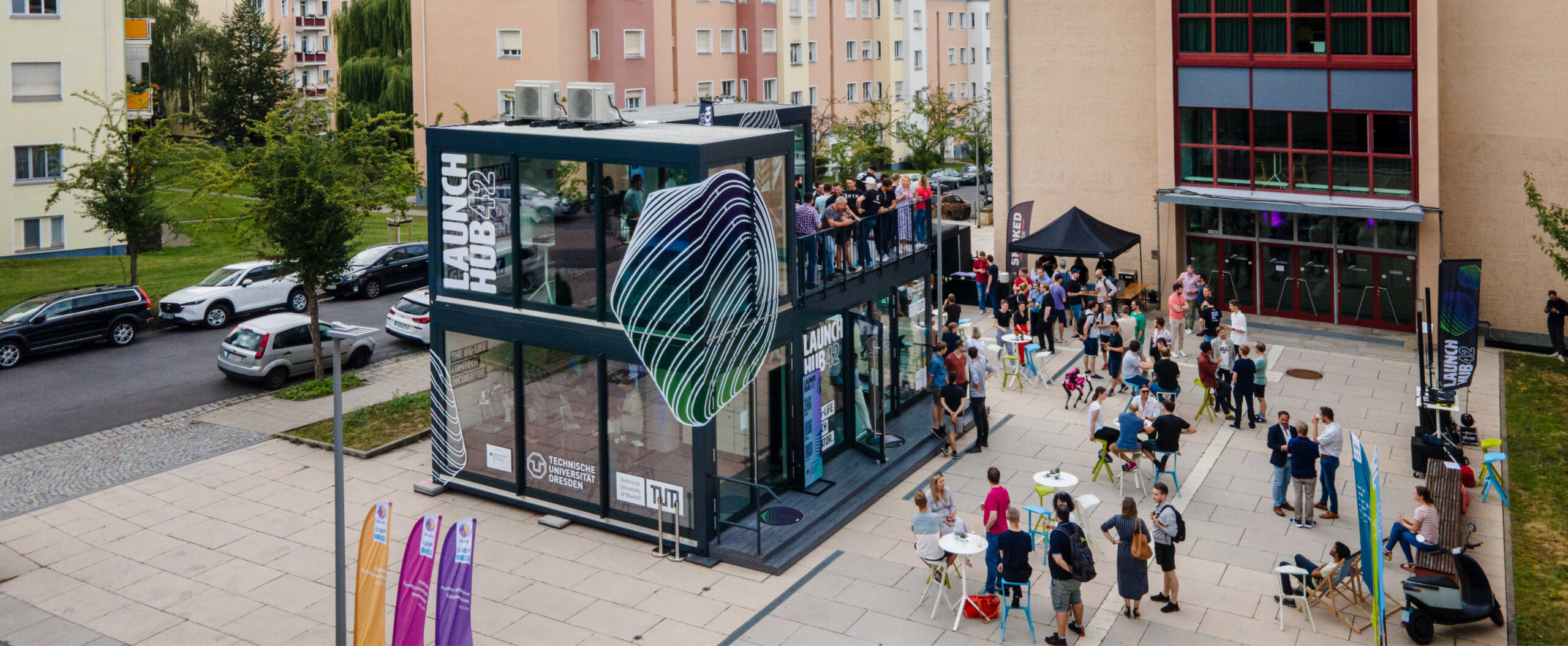ComSpace at launchhub42 is the heart of innovation, offering startups and researchers a flexible space to develop tomorrow’s technologies. Built in just three days, this 6-meter high container combines modern architecture with functional areas for co-working, meetings, and exhibitions. With a rooftop terrace and central location, ComSpace is a creative meeting point for today’s and tomorrow’s tech.